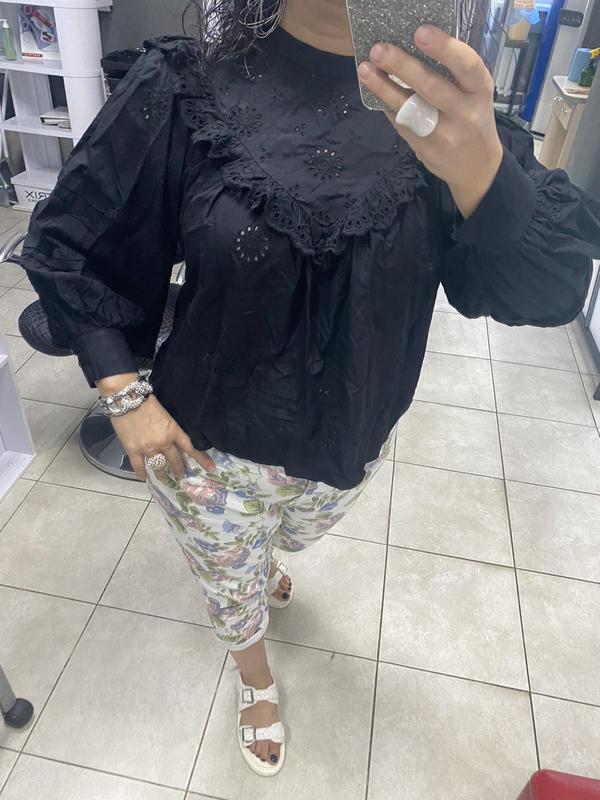 Шикарная рубашка Рукав фонариком Рисунок ненавязчиво с прошвы , В живую это шикарная вещь Длина 60 Грудь полуобьем 62 Низ полуобьем 70 Рукав от шеи 65 Плечи от шва до шва 34 Ткань вискоза Сядет хорошо оверсайз