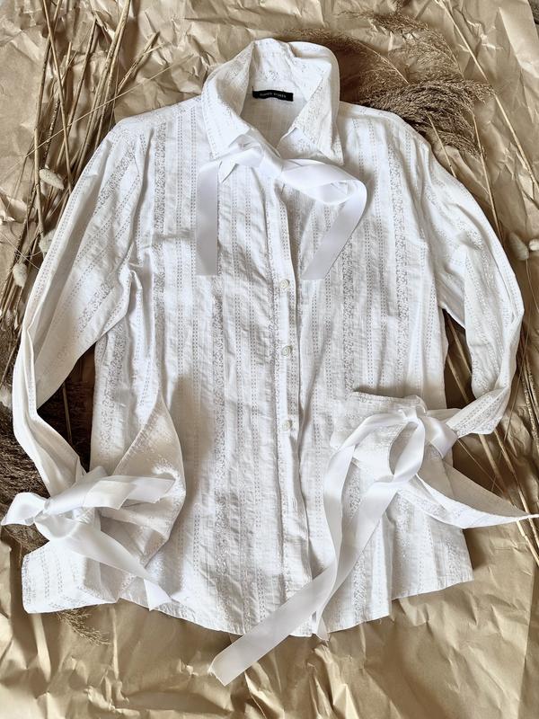 Котонова класична рубашка. з декоративними завʼязками на рукавах.