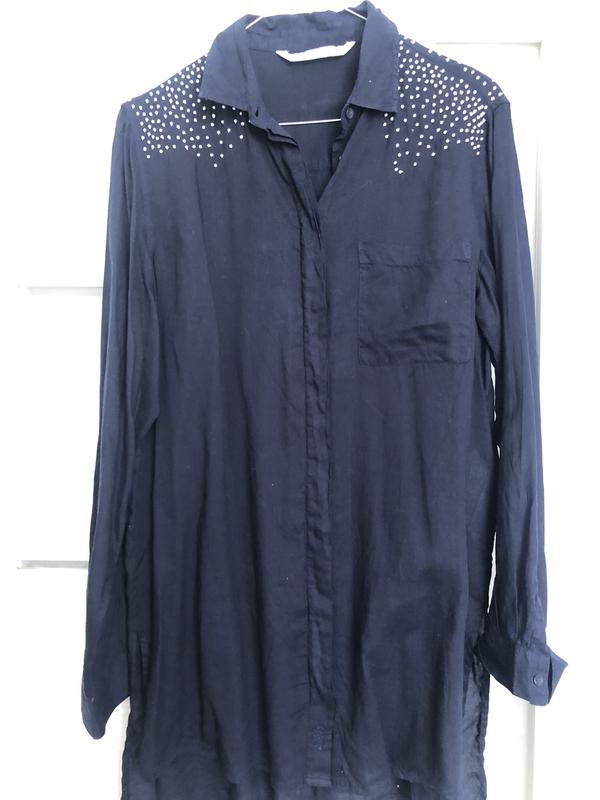 Нова рубашка розміру L. Подовжена , добре буде під лосини в не тільки . Колір темно синій .