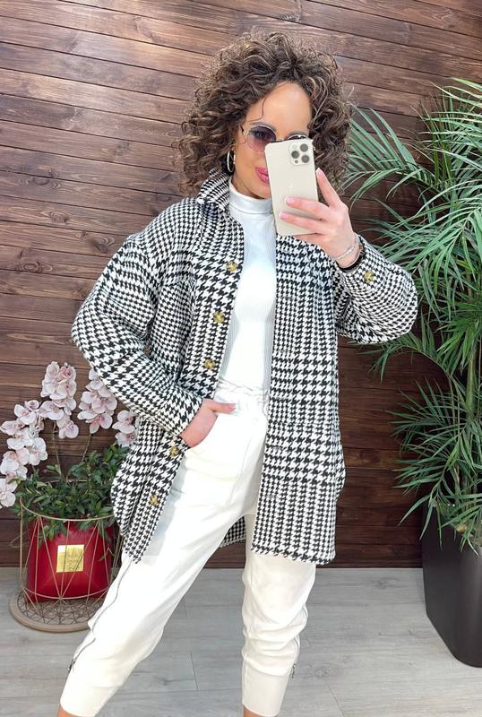 Утепленная рубашка oversize «Адриана» 🔹 ткань: турецкий твид-принт "гусиная лапка" - эластичная, плотная и мягкая шерстяная ткань; поверхность материала рельефная, покрытая небольшим ворсом 🔹размерный ряд: S (42-46), M (48-52) 🔹приспущенный рукав 🔹изделие застегивается на пуговички, декорирован карманом 🔹стиль: повседневный, молодежный, casual 🏷Размер S (42-46) 📌Длина изделия - 84 см 📌Длина рукава - 70 см ОГ – 112 см 🏷Размер М (48-52) 📌Длина изделия - 86 см 📌Длина рукава - 71 см ОГ – 118 см.ск3.Не надавливайте на кнопку Купит..технические проблемы подписывайтесь..жду)