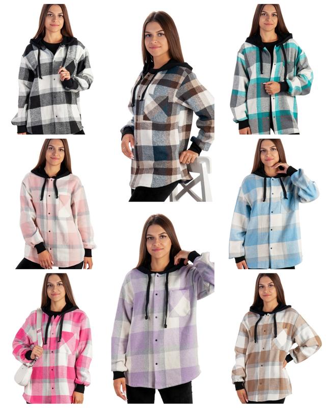 Жіноча байкова сорочка у клітинку, теплая рубашка худи байковая, тепла сорочка байкова, ст...