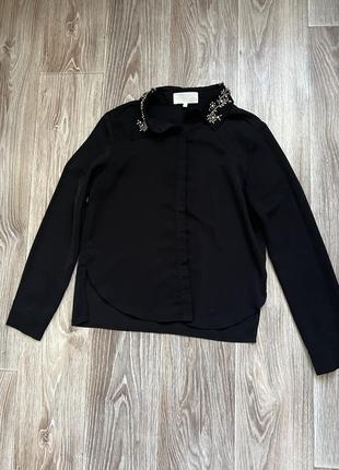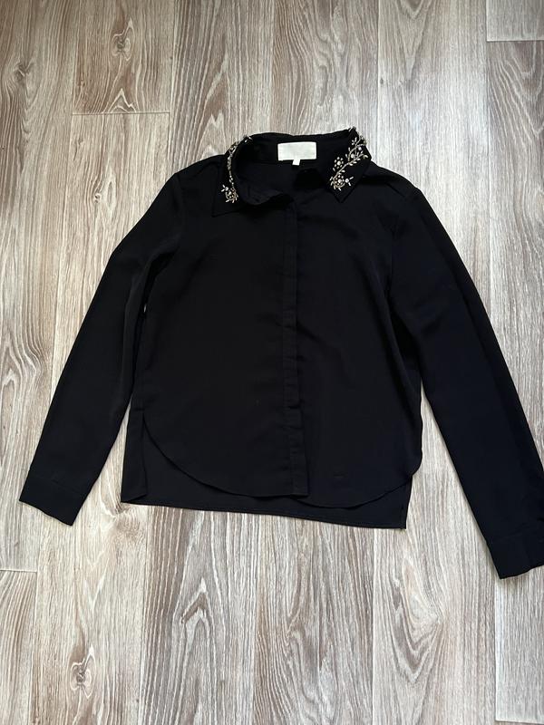 Рубашка в хорошем состоянии, цвет сохраненный, есть один нюанс не хватает одного каминчика на воротнике на фото видно, размер хс -с