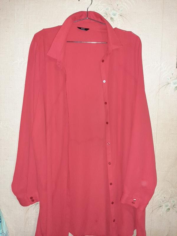 Сорочка червона довга, розмір UK 20 : ПОГ - 60, довжина - 83, рукав - 64см, заокруглені розрізи в низу.