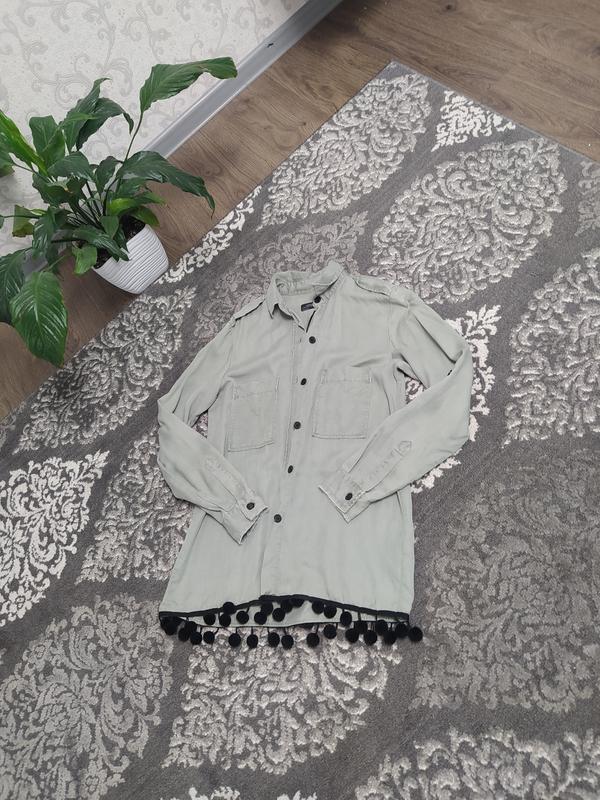 рубашка, колеру хаки (живую цвет чуточку более насыщенный), украшенная понпонами,стан новой,очень необычная и эффектная,размер указан С,можно и на М.