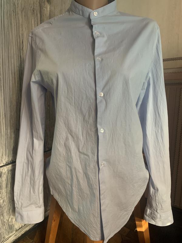 Рубашка хлопок стрейч . Длинный рукав, воротник стойка , бледно голубой цвет