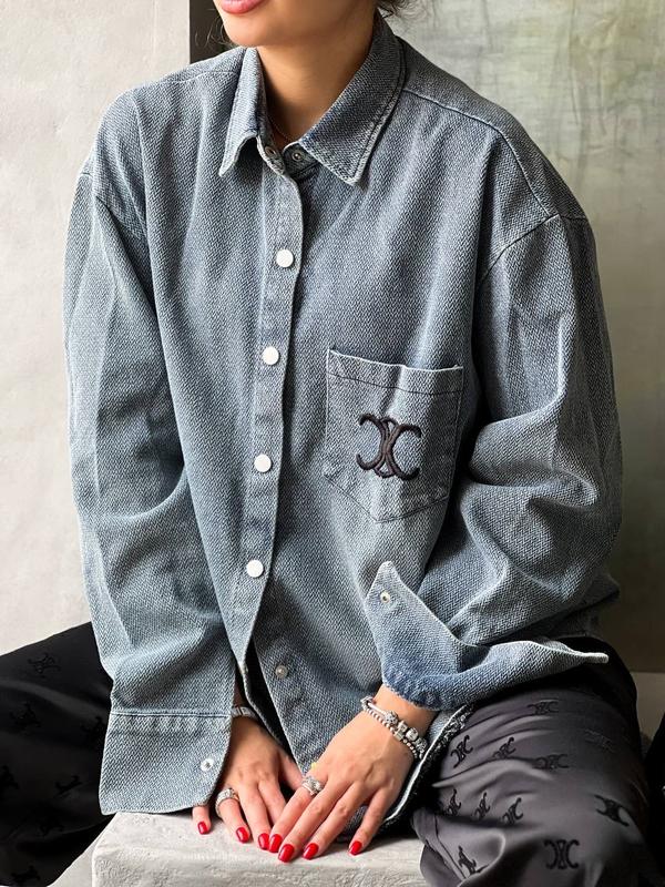 NEW COLLECTION 🤍🤍 Джинсовые рубашки оверсайз с брендовым лого 🔛 Размер единый 42-46, длина 68см, ширина 54см 〰️Арт. 575 🏷 цена 1120 ОРН