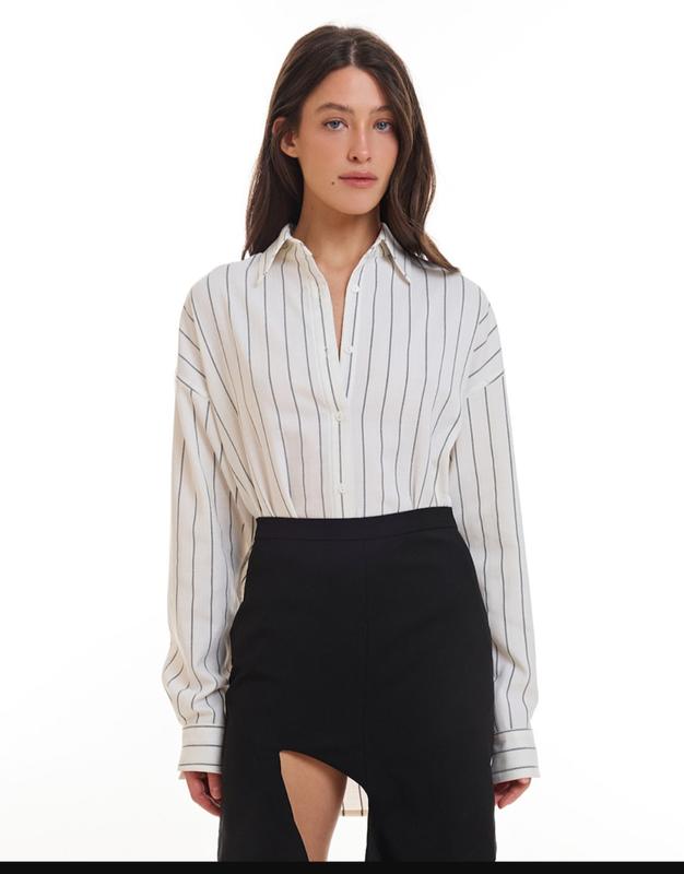 Рубашка белья в полоску, состояние iдеальный, поямого покроя, разреза по бокам Замир ПОГ 52 см Длина 76 см Плечi 47 см Рукав 58 см ПОБ 55 см
