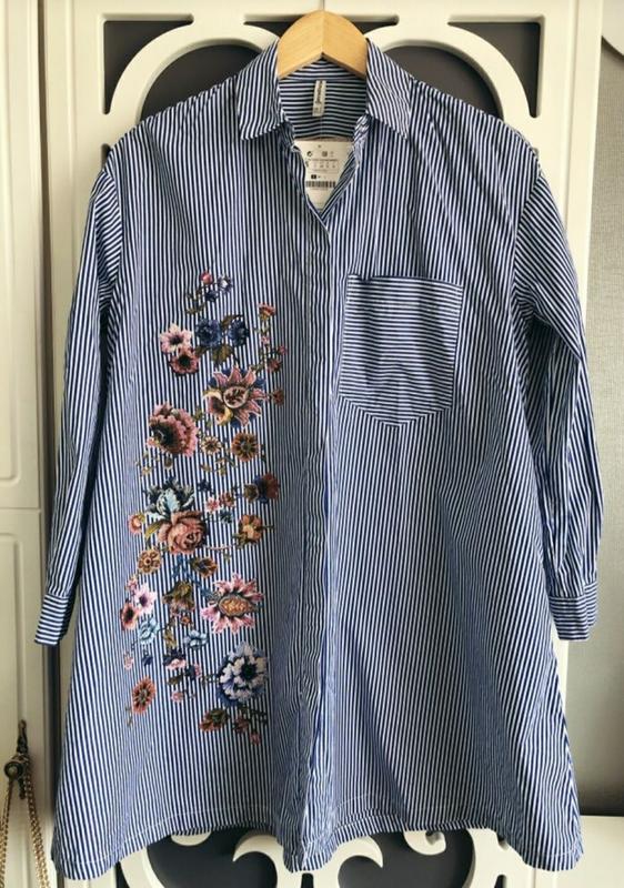 Рубашка платье Stradivarius, с аппликацией, оверсайз, размер S-M