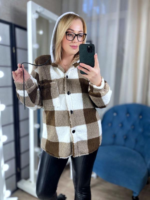💥Тренд сезона – рубашка на пуговицах с капюшоном Мягкая и приятная к телу рубашка согреет вас в прохладную погоду В ней вы будете чувствовать себя уютно и комфортно Модель "8036" 📏Размеры: 42; 44; 46; 48 Ткань: Тедди( Турция) Люкс качество 😘 Замеры: грудь/ талия/ длина/ рукав 42р-108/106/70/62 44р-110/108/70/62 46р-112/110/71/62 48р -114/112/71/62
