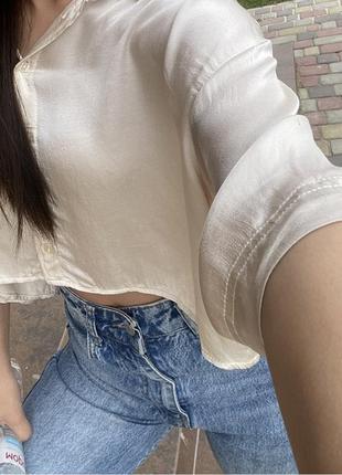 Вкорочена сатинова сорочка з подовженим задом