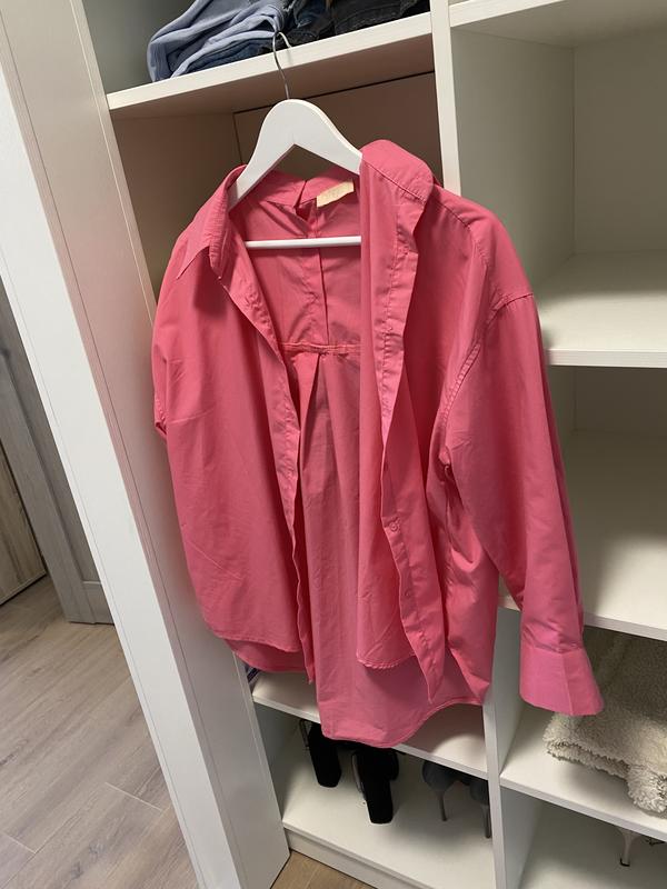 Рожева рубашка лляна. Сзади есть несколько погустников. Свободный крой. Нова. Есть такая же зеленая