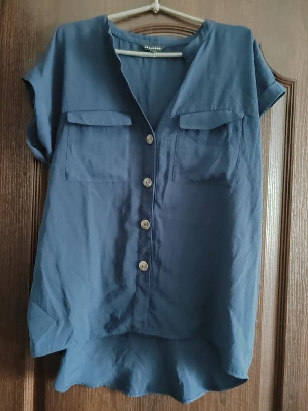 Женская рубашка с коротким рукояткой свободного кроя, размер L Длина рубашки - 67 см. Ширина сорочки - 53 см.