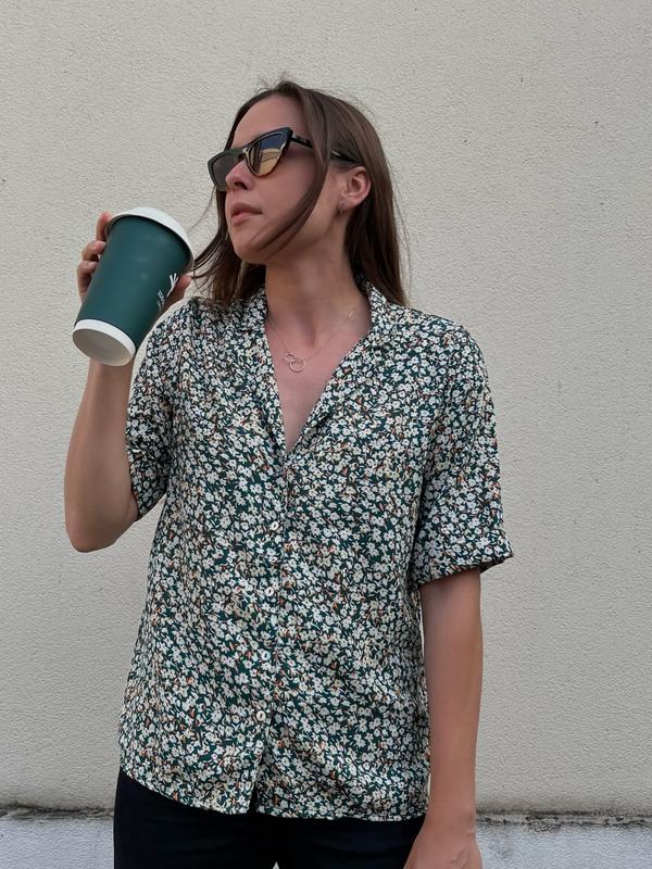 Рубашка прямого кроя с нежный цветочек от бренда ONLY. Ткань легкая, отлично подойдет для лета. Размер 36 Длина 61 см Длина рукава 28 см Полуобхват груди 48 см Состав 100% полиэстер Если нужны дополнительные фото или замеры - пишите, с радостью пришлю :) Инст tvoya_znakhidka