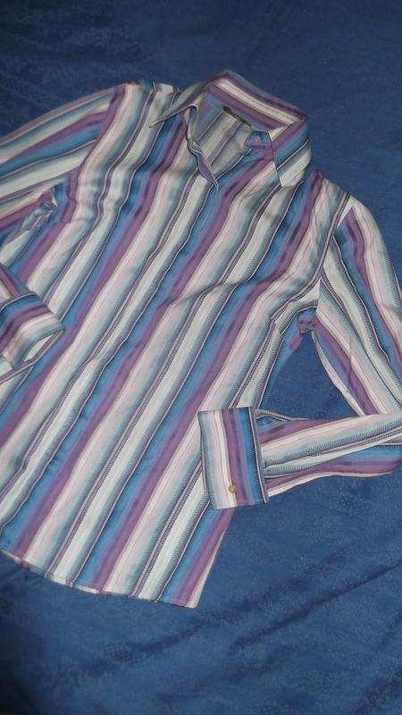 Рубашка в очень хорошем состоянии в полоску на пуговичках. Плечо 13 см, рукав до подворота 61 см, по груди 46-47 см, длина 66-67 см, ширина 44-45 см, по спинке 38-39 см)