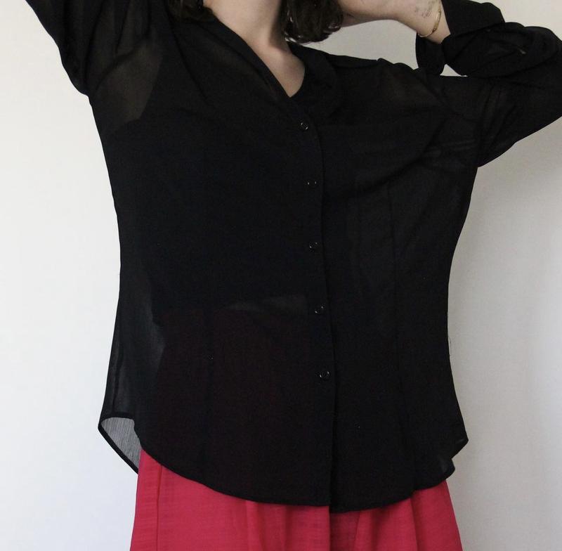 Очень стильная рубашка, полупрозрачная, Н&М, качественная ткань, стрелка отсутствуют, никаких зацепок также. За дополнительными вопросами, замерами и фото убедитесь в личные.