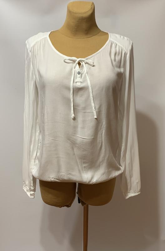 Блуза белого цвета из тонкой ткани, боковая бирка срезанная,стан отличный, без дефектов. Размер указан М, подойдет на 46/48р,ориентируйтесь на замеры👇👇👇 По плечам 41см длина по спине 66 см, Полуобъем по груди 54-55 см Полуобъем по талии 51 см Полуобъем по бедрам 53 см По низу 42-58см(резинка) рукав 63 см,ширина 18см