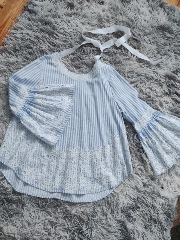 блуза ZARA розмір XS S стан ідеальний заді зав'язується рукави кльош дуже гарно сидить на тілі виробник Індія Заміри: Пів обхват грудей 46 сантиметрів Довжина 56 сантиметрів за замірами та додатковими фото, звертайтеся якщо робите покупку то на 2 річ -10% знижки, або якщо берете дві речі, то третя у подарунок за ціною дешевшої переходьте у мій профіль там багато цікавого🥰