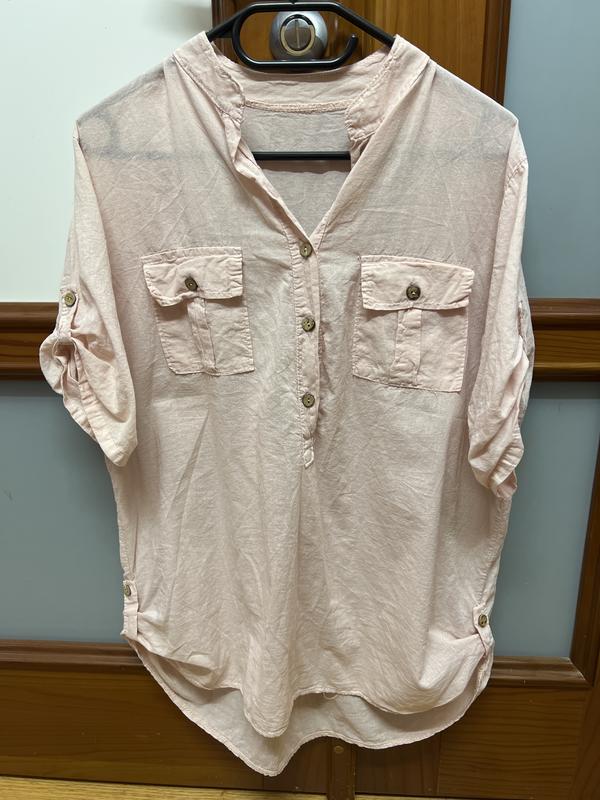 Легка котонова сорочка Довжина спереду 68см Довжина з-заді 75см По боках защіпається на гудзики, так як і рукави Довжина рукавів 30см