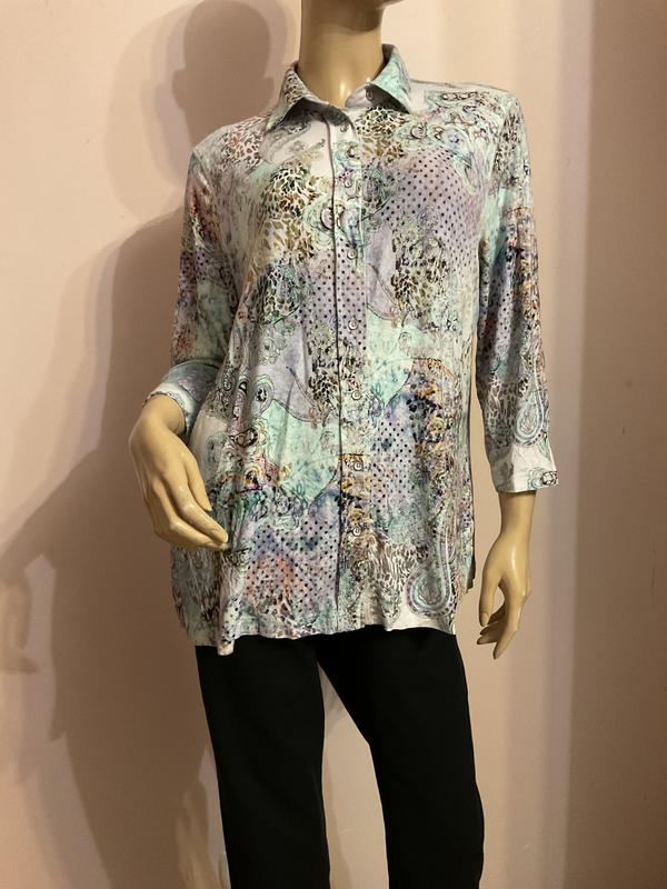 Трикотаж качественный, прыемный. Тянется. На пуговицах. Без дефектов. Замеры в груди 61-63 см в бедрах 63 см длина 69 см в плечах 41-45 см рукав 47 см по окружности руки 24-26 см 21:1:24