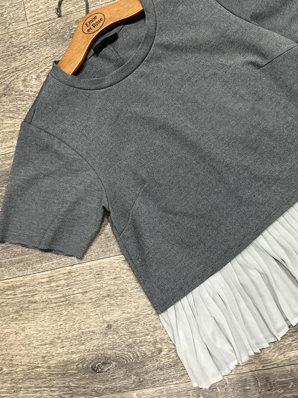 Стильная, фирменная блуза, внизу с рубашкой обманкой. качество супер, дефектов отсутствуют Длина 51 см ПОГ 43 см