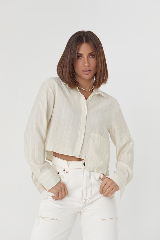 Укороченная рубашка в полоску с акцентным карманом артикул: 4447