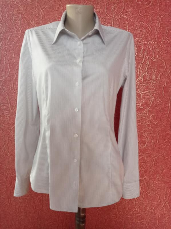 Качественная рубашка в мелкую полоску в идеальном состоянии. Замеры: длина 65, рукав 62, плечи 42, полуобхват груди 46-48.
