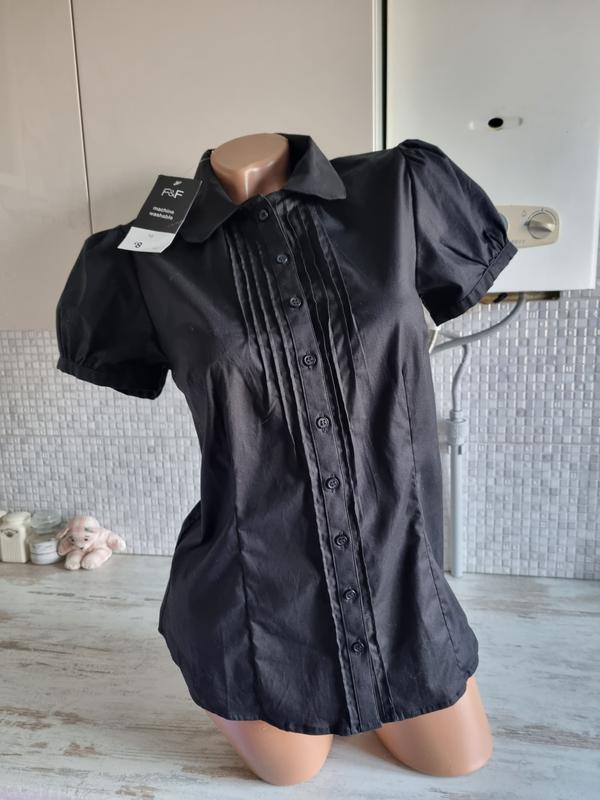 Новая брендовая черная женская хлопковая рубашка блуза з коротким рукавом f&f 10 m м