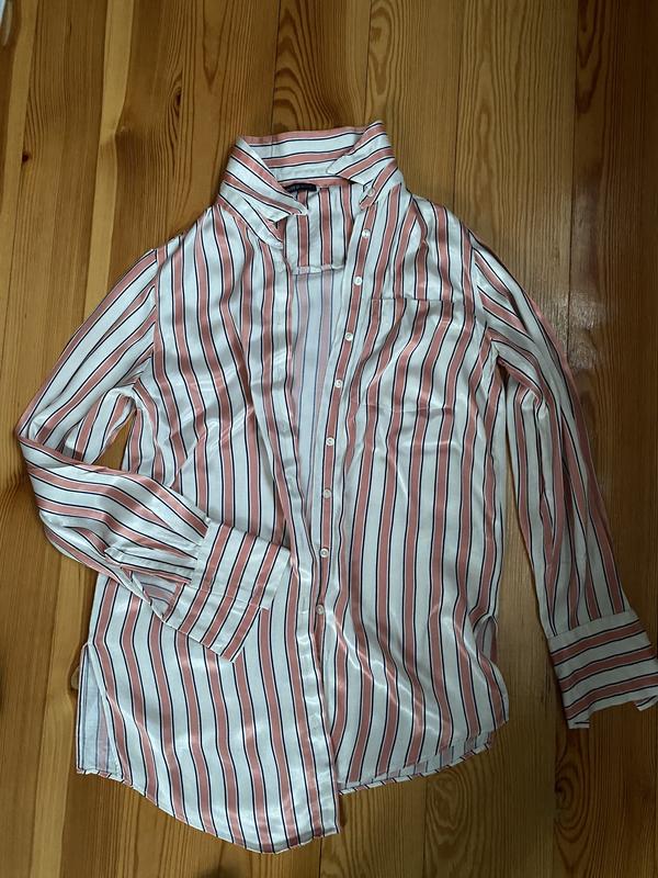 M&s рубашка из вискозы на вид как шелк в полоску в очень хорошем состоянии, на пуговиц...