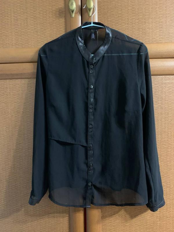 Прозрачная рубашка с кожаной отделкой. Размер 36 (s). Длина 61см, полуобхват талии - 43см, длина рукава по шву - 60см.