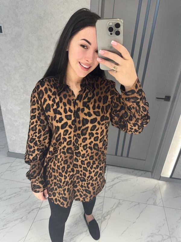 Арт 4936-010 Цена 910 грн Фото прицела Сорочка лео🐆 ▫️Производитель Турция (отличного качества👌) ▫️Ткань: вискоза 100% ▫️Цвет: Леопардовый как на фото ▫️Размер: S,M, L