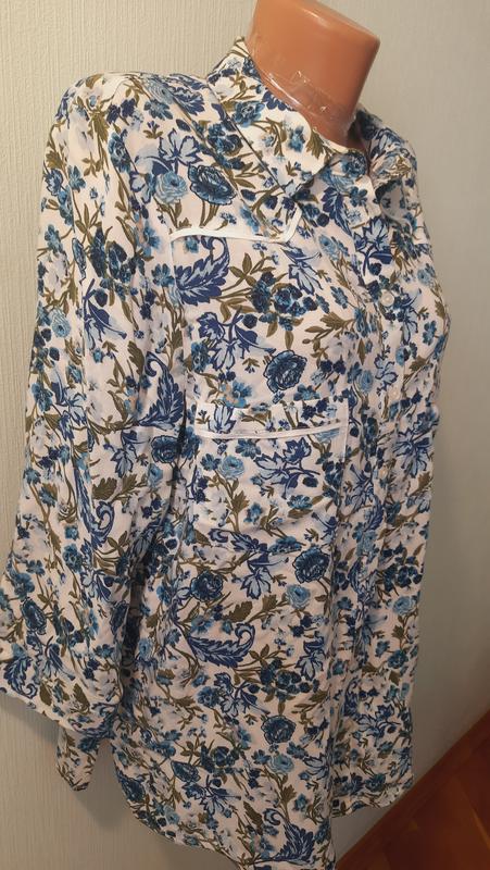 Новичка, яркая рубашка из натуральной ткани на девушку 52р. Длина по спинке 69см, длина рукава с плечом 62см, ширина подмышками 56см, ширина низа 60см.