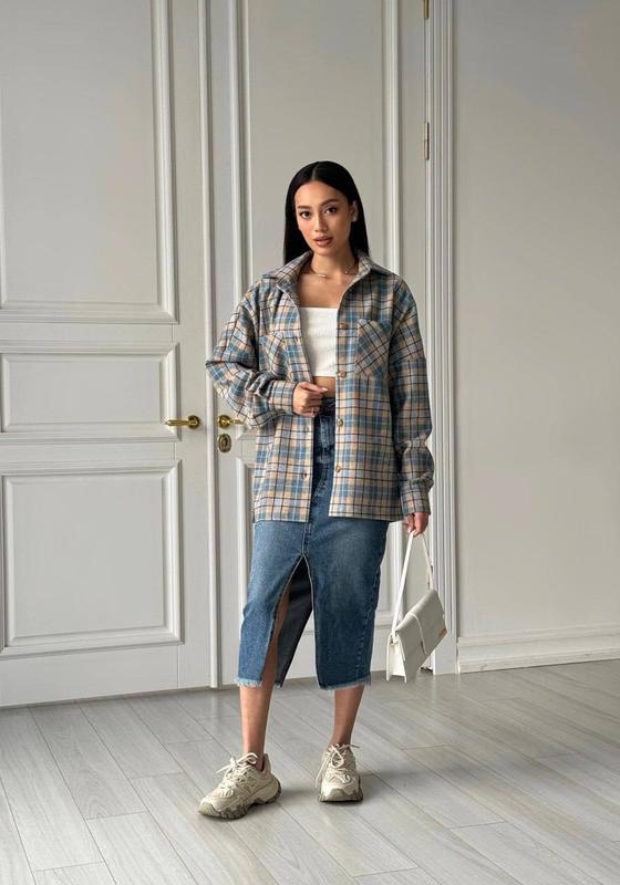 💙Утеплена сорочка Декса 💛ціна 1370грн Тканина: полегшена пальтова тканина клітинка Склад: 85% вовна, 15% поліестер Колір: сірий, блакитний (клітинка, як на фото) Розмір: XS-S, M-L, XL-XXL, Параметри моделі на фото: Зріст: 170 см, ОГ: 86 см, ОТ: 64 см, ОС: 93 см. На фото представлена модель розмір XS-S (42/44). Комплектація: сорочка Фактичні виміри по виробу: Об’єм по грудях: XS-S - 108; M-L-112; XL-XXL-116; Об’єм по талії: XS-S - 108; M-L-112; XL-XXL-116; Об’єм по стегнам: XS-S - 110; M-L-114; XL-XXL-118; Об’єм рукава зверху: XS-S - 49; M-L-47,5; XL-XXL-49; Довжина виробу по спинці: XS-S - 70; M-L-70; XL-XXL-70; Довжина рукава: XS-S – 75; M-L-75; XL-XXL-75;