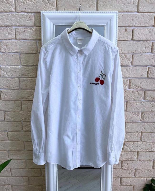 Біла сорочка блузка катон хлопок h&m be cherry ful черешня