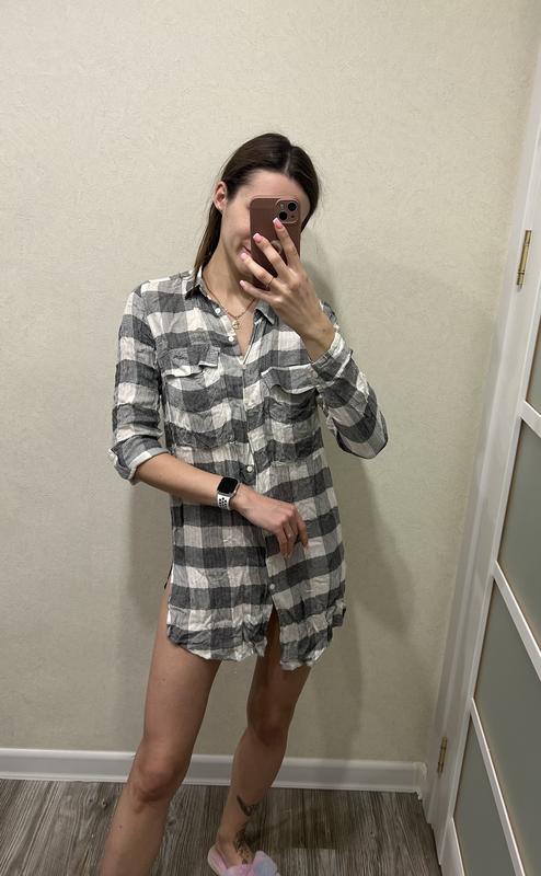 Жіноча рубашка Розмір s ( на м не підійде ) Вона в ідеальному стані, у випрасованому стані виглядає звісно ще краще ) Носити її можна як завгодно . На фото показала ) рукав можна підвернути і защіпнути на ґудзик