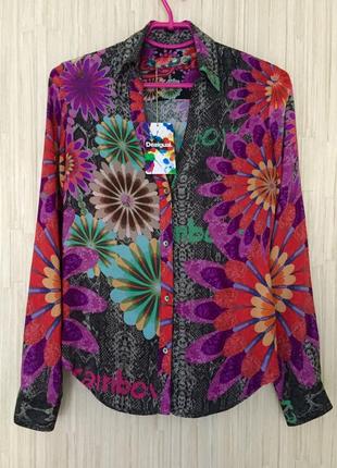 Сорочка відомого бренду Desigual (Іспанія). Новий стан. Розмір XS. Довжина по спинці - 65 см, ПОГ - 42,5 см, ПОТ - 40,5 см, довжина плеча - 11-11,5 см, довжина рукава - 63-64 див. Дуже приємна за складом тканина. Виглядає супер класно!