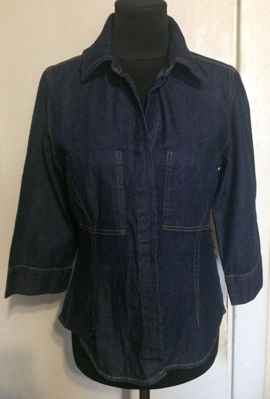 Джинсовая рубашка , размер с. Плечи 39/ рукав 43/ по груди 50/ длина 59.