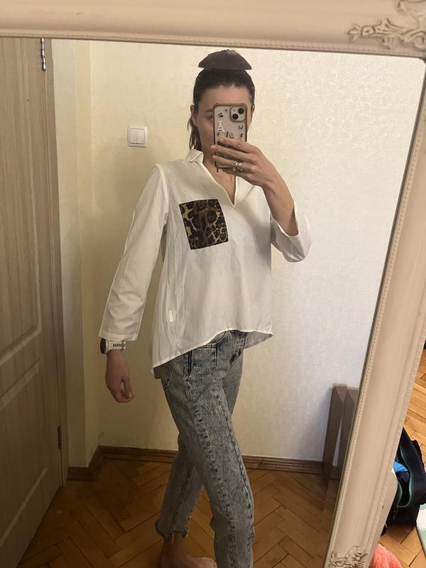 Стильна сорочка туніка з подовженою спинкою Кишеня леопард ненавʼязливо та стильно підкреслить індивідуальність та смак Супер якість Ідеальний стан Всі заміри є на фото