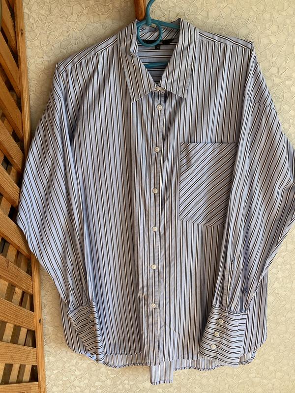 Фирменная рубашка оверсайз со спущенными рукавами: ОГ 53, ДР 56, длина 70 спина 75