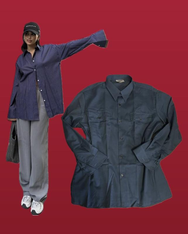 Стильня темно синя сорочка/ Рубашка мужская, но можно носить и девушке-унисекс оверсайз/ Подойдет на 38-42 европейский ориентируйтесь по замерам: Длина 76.5 см/ Плечи 56 см/ Рукав 60 см/ Пог 61 см/ Пот 60-61 см/ Знизу 62 см/ Есть карманы, продается без возврата/
