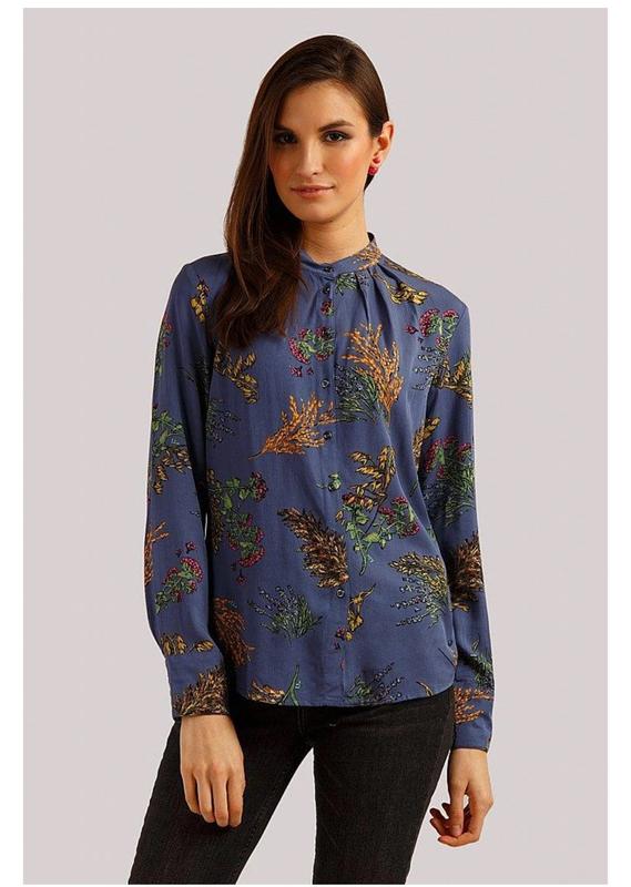 Блузка прямого кроя выполнена из воздушной вискозы и станет отличным выбором для повседневных образов. Блузка застегивается на пуговицы. Благодаря длинным рукавам эта модель подойдет и для офисных образов, а изящный цветочный принт освежит любой образ.