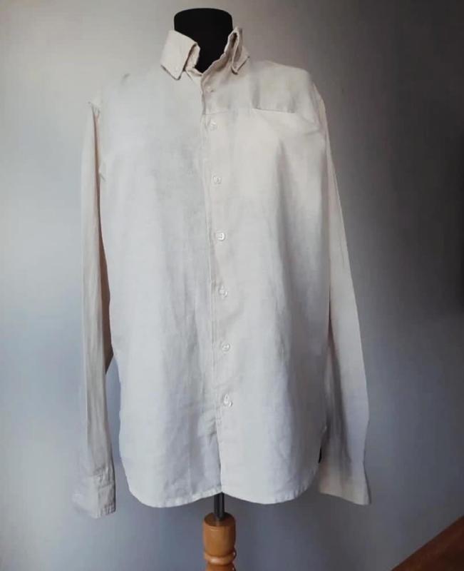 Рубашка бренда Dressmann в идеальном состоянии. Размер S-M. Замеры: от проймы до проймы-54 см, пот-51, пост-53 см, длина рукава-65 см, длина по спине-73 см. Состав ткани: 55%- лен, 45%-хлопок.
