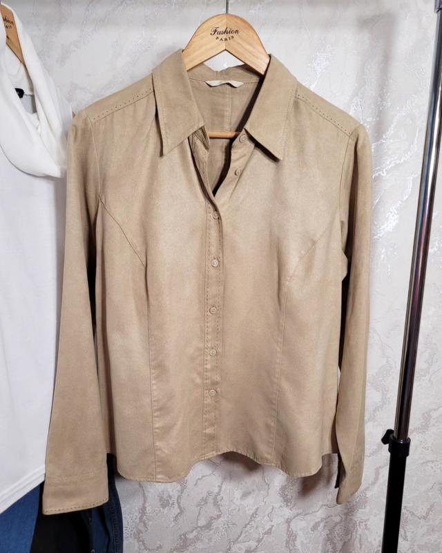 ❤️бежевая рубашка материал по типу замш, немного приталенно, приятная к телу ☑️ Размер- 16 Пог 54,5, пот 49, по низа 54, длина 60, рукав 61,5 ☑️ Бренд- marks &Spencer ☑️ Состояние- идеальное Фото на теле не делаю!!!