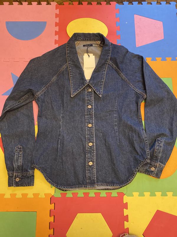Синяя новая рубашка - куртка от голландского бренда. Размер С. Без плечевого шва, рукав от воротника 74, грудь 48. Смотрите еще мое объявления.