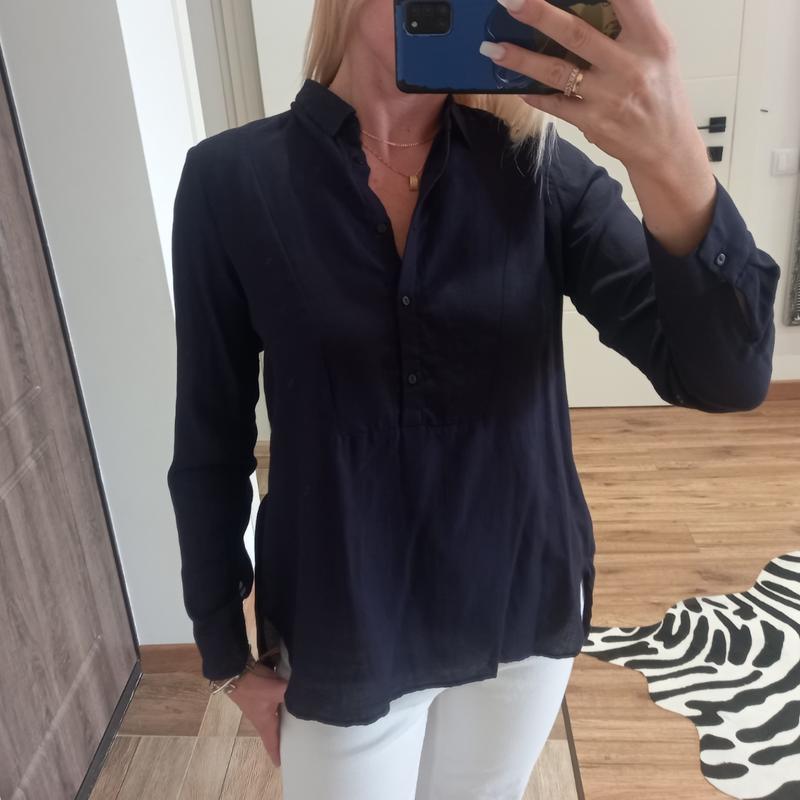 вільного крою, котон, темно синя, ПОГ 49, довжина 68, перед 64, рукав 59, плечі 40
