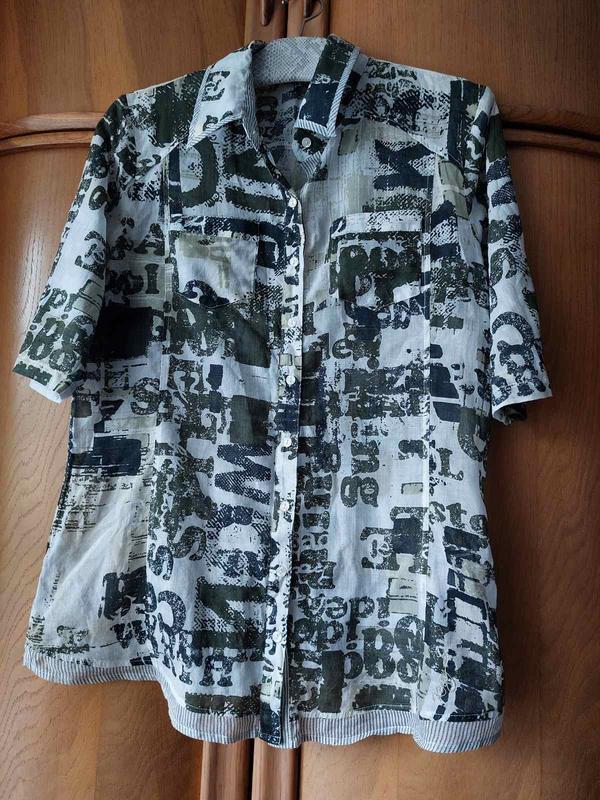 Легкий, ніжний котон. Пог 53см, пот 47см, пониз 55см, плечі 40см ,довжина рукава 34см, довжина по спинці 68см.