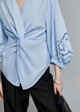 Легкая рубашка с декоративным узлом спереди и вышивкой на рукавах Доставка индивидуально под клиента