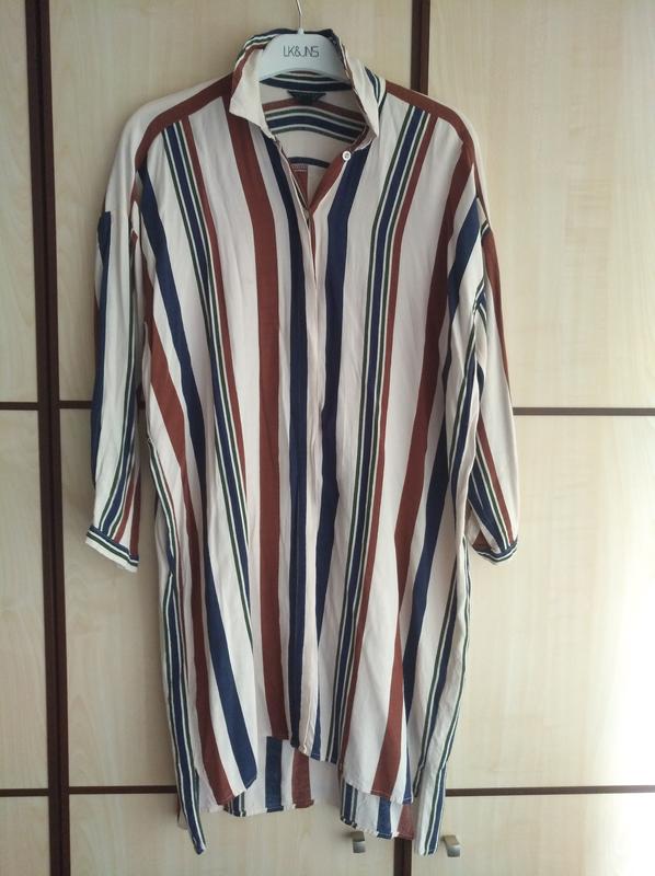 длинная лёгкая вискозная рубашка- платье, плечи 56 подмышки 54 длина перед 75, зад 85 рукав 39