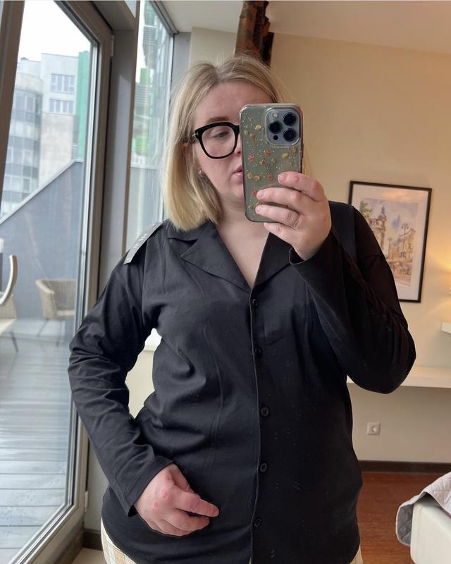 🖤 Трикотажная рубашка NA-KD ✨ EU 44 Ноаа ОГ 120 <unk> ОТ 112 <unk> Длж 75 <unk> Рукав 53 50% котон 50% модал 📌Мои параметры ОГ 110 <unk> ОТ 103 <unk> ОБ 127 Ношу UK 18-20