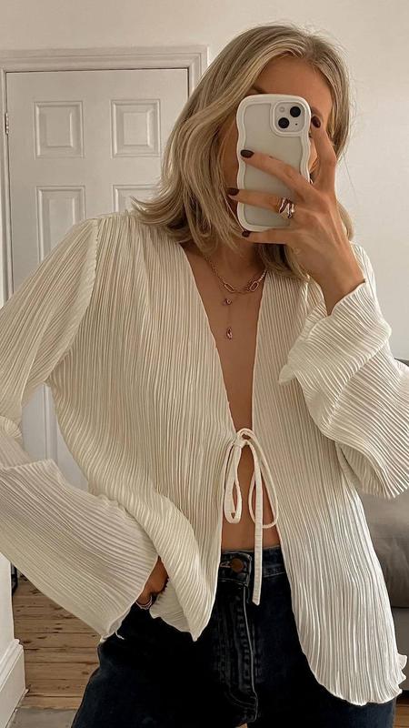 Нереальні кофтинки на зав’язках в самому трендовому кольорі 😍 • матеріал: сатин гофре • розмір універсальний • довжина: 58 см, рукав 61 см 00470 💳Оплата: По повній оплаті на картку, або післяплатою з передплатою 200 грн