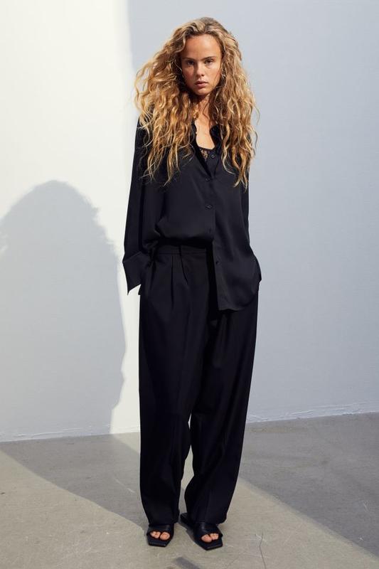 Нова з біркою жіноча сорочка, замовила на офіційному сайті через Баєра. Розмір S, колір чорний. Довжина попереду 67 см, ззаді 70 см, від підмишки до підмишки 52 см, плечі 41 см, рукав від плеча 59 см. Сорочка з м'яко текстурованого переплетення з загостреним коміром, ґудзиками спереду та ярмом зі складкою ззаду. Довгі рукави з манжетами на ґудзиках та закругленим низом. Звичайна довжина, комір на ґудзиках. Polyester 100%. Обміну та повернення немає. Всі речі нові і з бірками, за необхідності надаю додаткові фото та заміри.